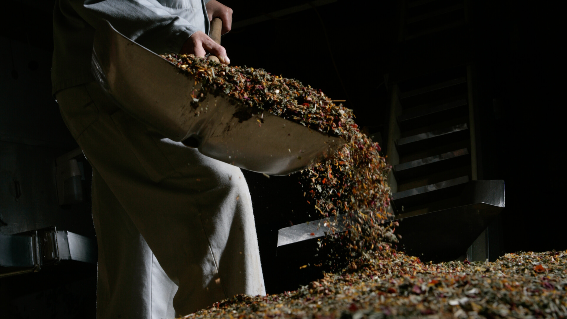 Nous utilisons divers broyeurs pour broyer et moudre les différentes matières premières: broyeur turbo, broyeur à marteaux, broyeur à broches, broyeur à cylindres, concasseur ou broyeur à meules. Les produits à haute teneur en huile sont broyés à froid. Nos machines permettent de mélanger efficacement de fines coupes et des poudres de 5 kg à 2 000 kg. Les herbes grossièrement coupées, par exemple pour les mélanges de thés, sont soigneusement mélangées à la main afin d’éviter la formation de particules fines.